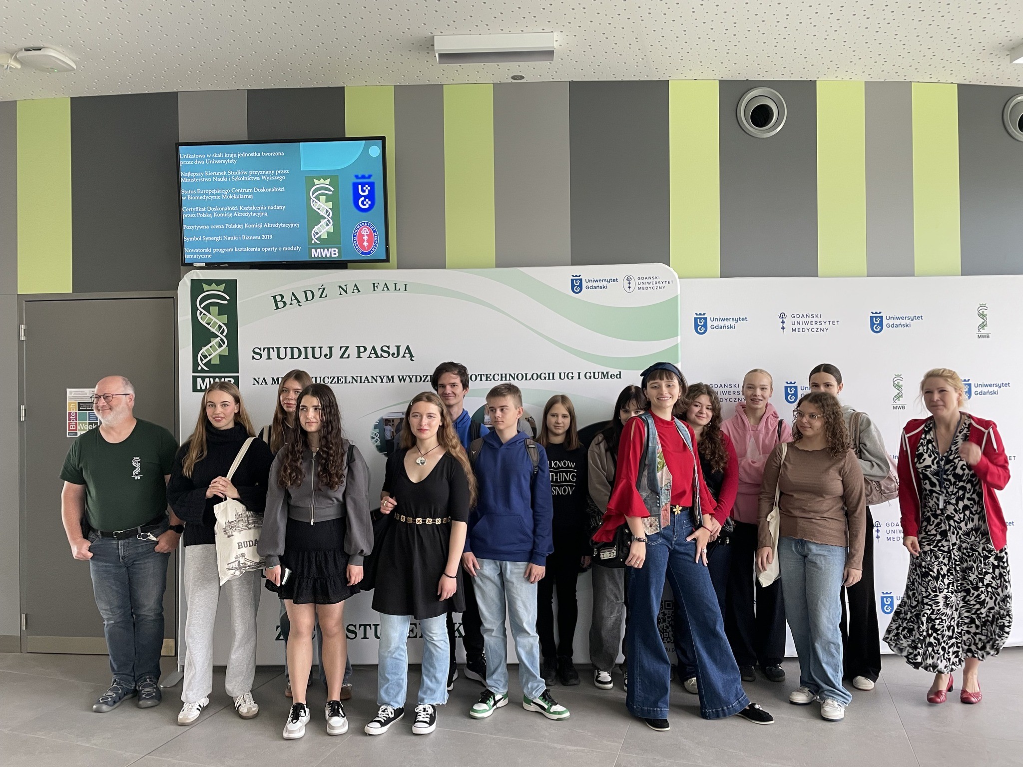 17 września uczniowie klasy 4C mieli okazję poczuć się jak studenci biotechnologii. Przeprowadzili izolację DNA plazmidowego w laboratorium, przeszli warsztaty bioinformatyczne na temat białek oraz zwiedzili budynek Międzyuczelnianego Wydziału Biotechnologii. Udało się również zobaczyć hodowle roślin w fitotronach oraz wejść do najnowocześniejszego w Polsce laboratorium zajmującego się badaniem niebezpiecznych wirusów. A wszystko to podczas BIOTECH WEEK 2025 w Instytucie Biotechnologii na Uniwersytecie Gdańskim. Być może niektórzy z nich już za rok podejmą tam studia.