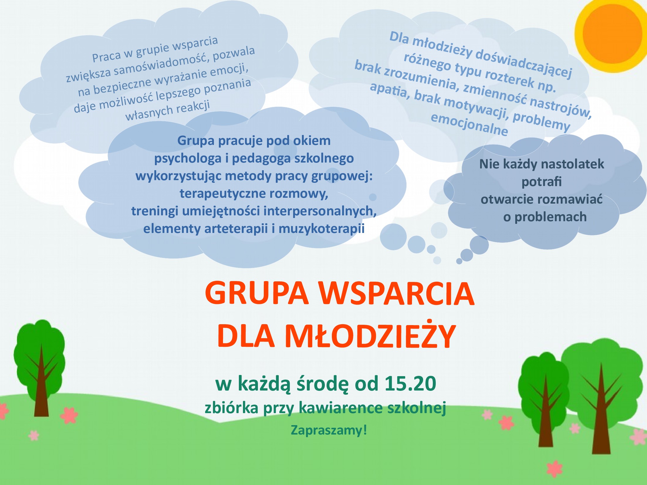 Zapraszam serdecznie na grupę wsparcia wszystkich chętnych uczniów. Pierwsze zajęcia ruszają od następnej środy - 9 listopada.