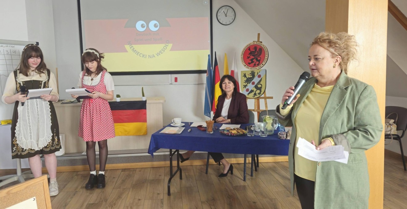 Dnia 13 kwietnia 2026 r. w naszej szkole odbył się II i III etap konkursu języka niemieckiego „Deutsch mit Spiel und Spaß, czyli niemiecki na wesoło”. Do udziału w nim zakwalifikowali się uczniowie klas VII i VIII szkół podstawowych, którzy przystąpili do rywalizacji w trzyosobowych zespołach.