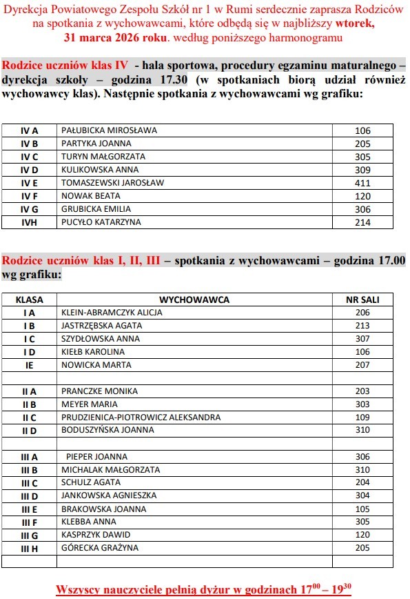 31 marca 2026r. - zebrania z rodzicami